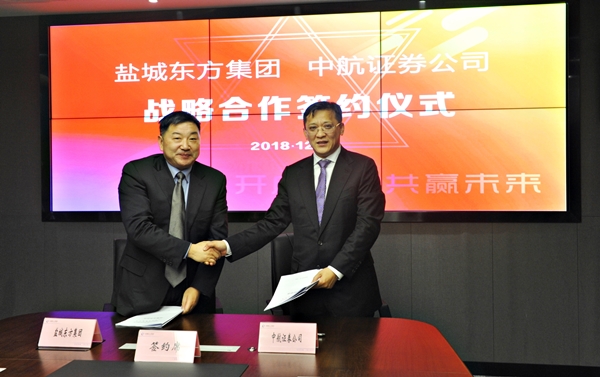 12月12日,鹽城東方集團與中航證券公司舉行戰(zhàn)略合作簽約儀式。集團黨委書記、董事長張振國在集團7樓會議室熱情接待了中航證券黨委書記、董事長、總經(jīng)理王曉峰一行。集團總經(jīng)理王旭東主持簽約儀式。集團領(lǐng)導(dǎo)許榮偉、孫為軍出席會議。