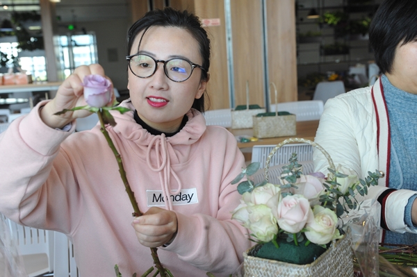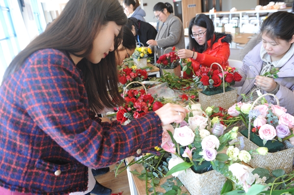 活動(dòng)現(xiàn)場(chǎng)花香四溢,女員工們手捧鮮花,仔細(xì)地裝點(diǎn)起自己的花束,表情專(zhuān)注,鮮花被一雙雙靈巧的手精心修剪后放入花籃內(nèi),呈現(xiàn)出最動(dòng)人的姿態(tài),創(chuàng)作出了一個(gè)個(gè)造型優(yōu)美、花團(tuán)錦簇、色彩活潑、穿插和諧的插花作品,現(xiàn)場(chǎng)氣氛溫馨浪漫,歡聲笑語(yǔ)響成一片。