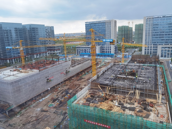 中韓(鹽城)產業(yè)園未來科技城北區(qū)項目入口滾動播放條屏疫情防控標語,張貼防疫宣傳標語,持續(xù)加強防疫指導宣傳教育,全面提高參建人員的防疫意識。施工現場,模板腳手架搭設、鋼筋制作綁扎、混凝土澆筑、防水施工有序進行中,集中有限力量突擊主體結構,并合理穿插室內工作。該項目科學組織,綜合劃分三個施工段,分解分布工程目標、編制具體控制節(jié)點計劃,按目標節(jié)點分步實施。該項目為高端配套區(qū)的核心載體??偨ㄖ娣e107157.27平方米。該工程含地下1層,地上15層,包含四棟主樓及裙房。截至目前,樁基工程,基坑支護、土方開挖工程,主樓地下室主體結構均已完成,地上主體結構完成30%。